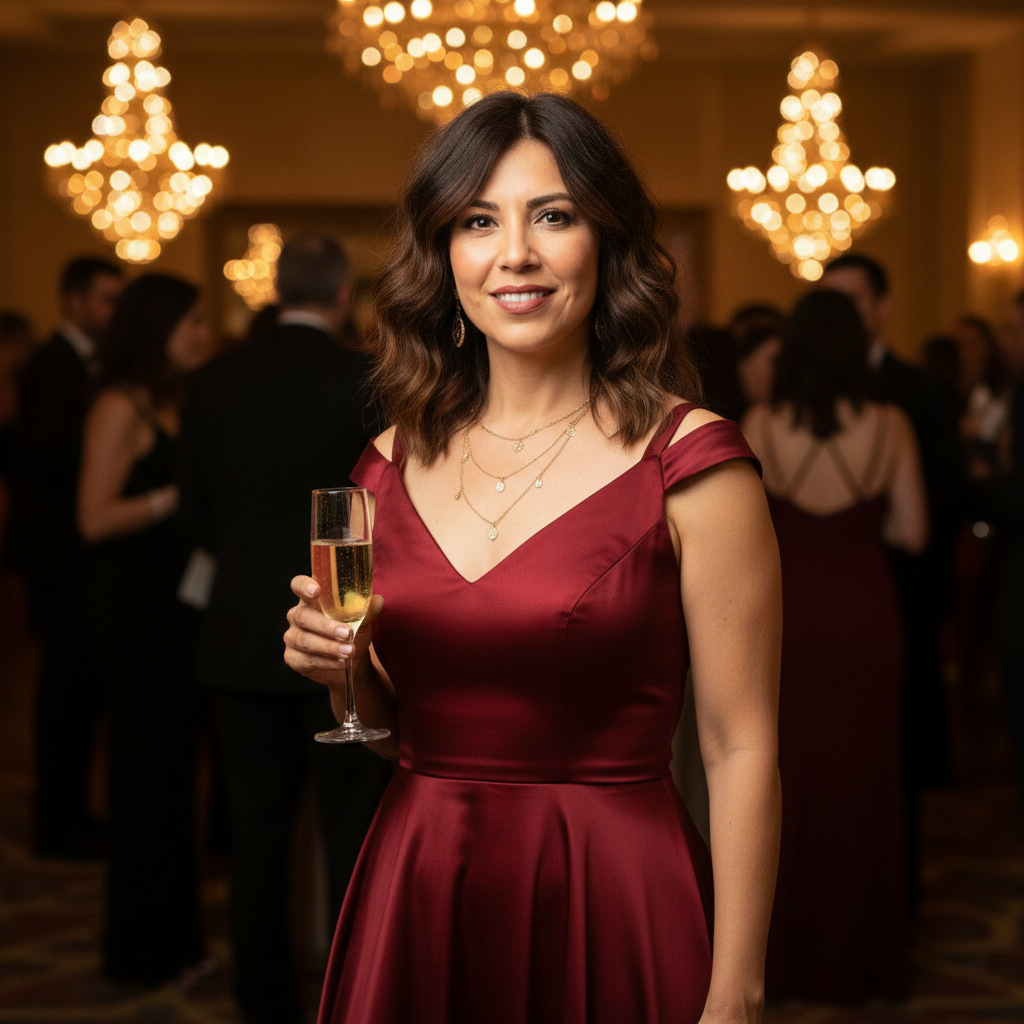 group at an elegant garden party, toasting with drinks, festive summer evening